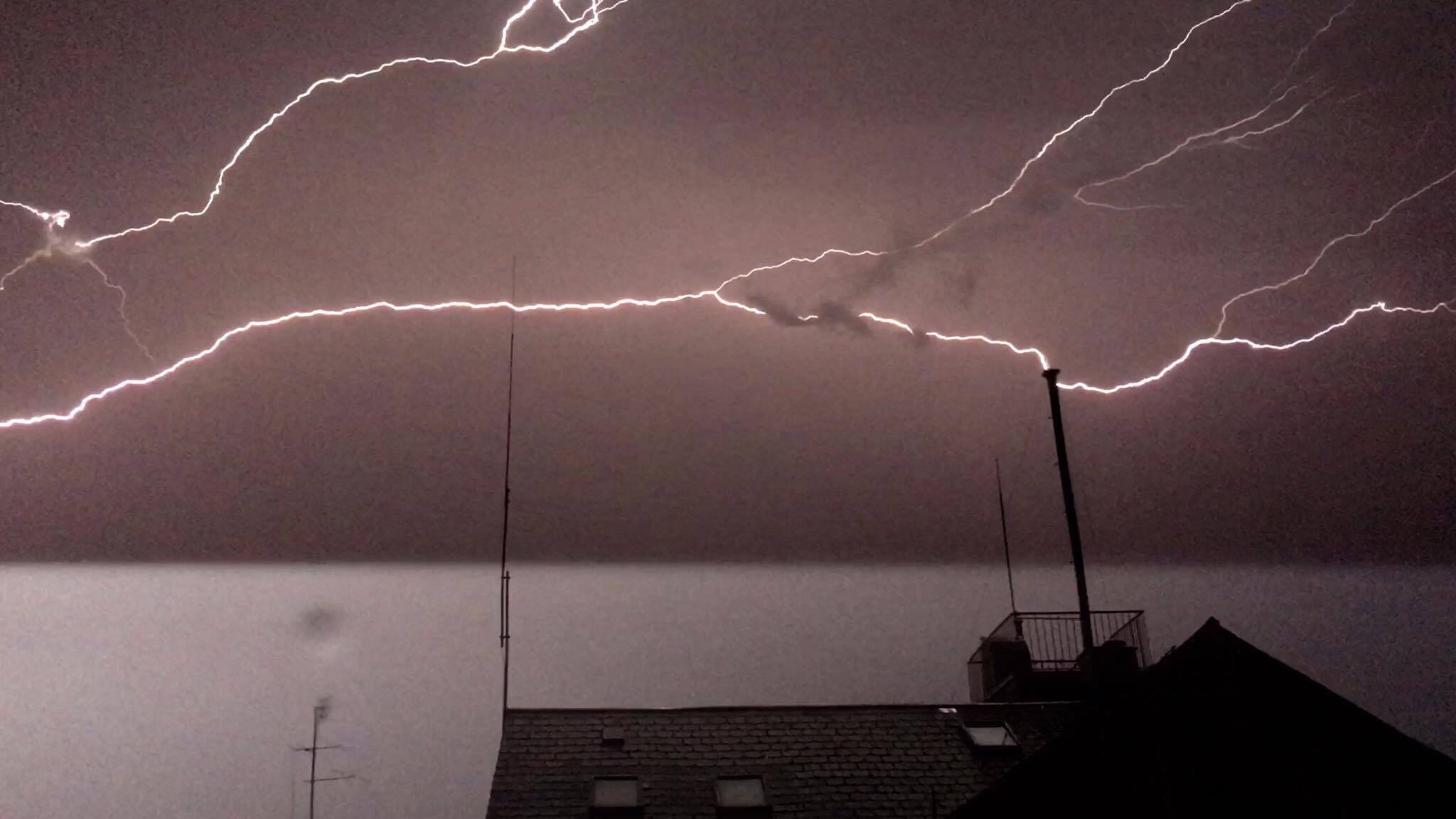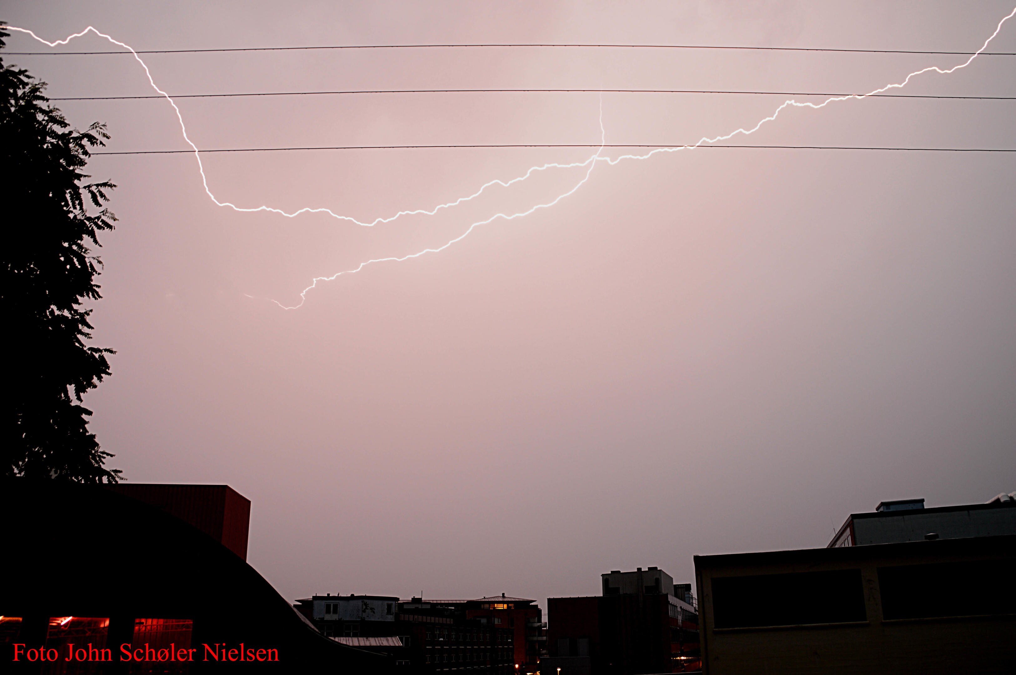 De kraftige regnbyger havde både torden og lyn med sig mange steder. Ifølge DMI passerede 21.032 lyn Danmark i løbet af søndagen.