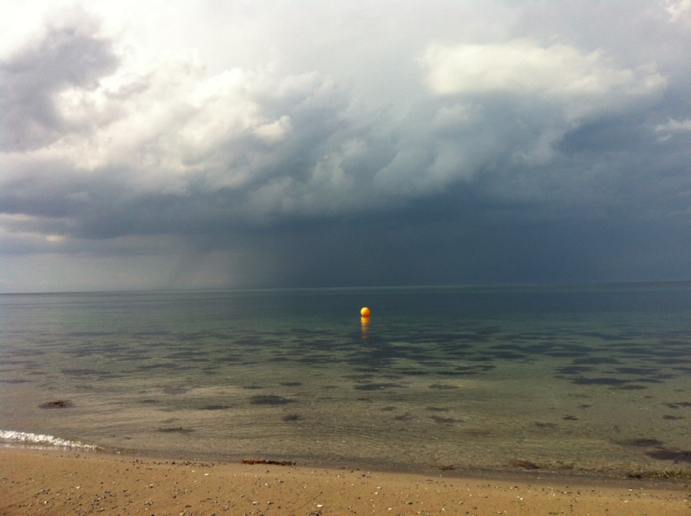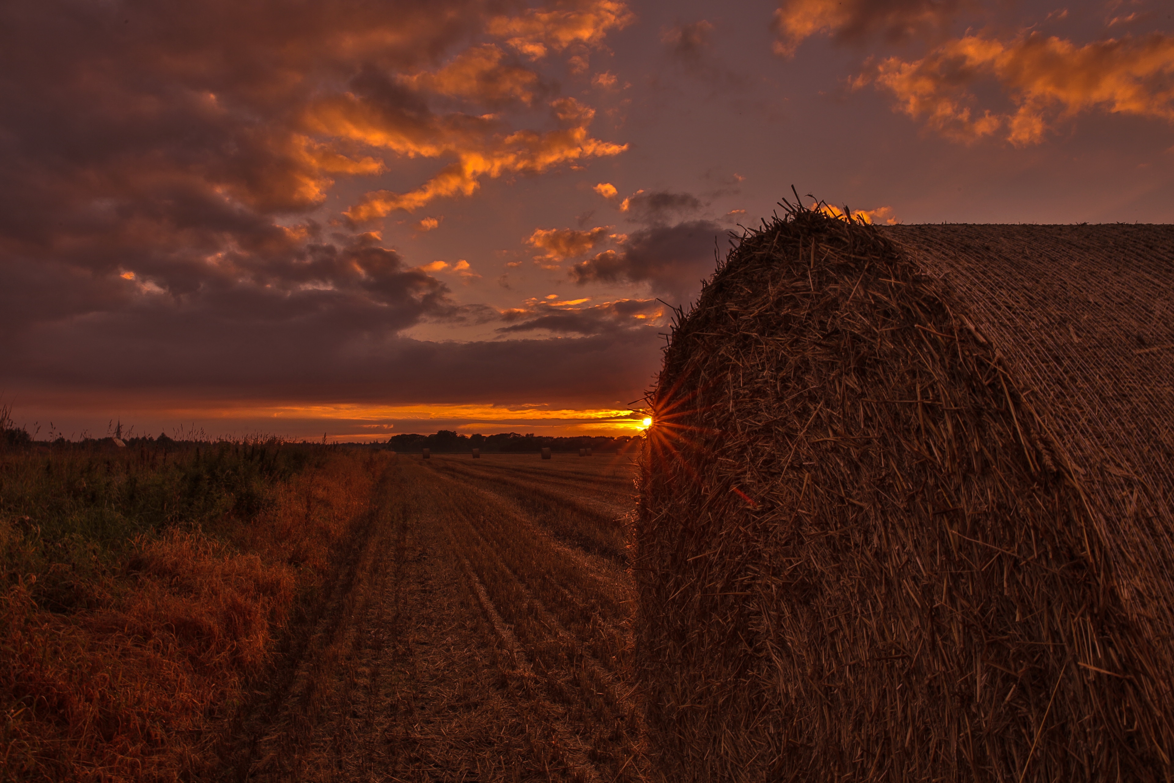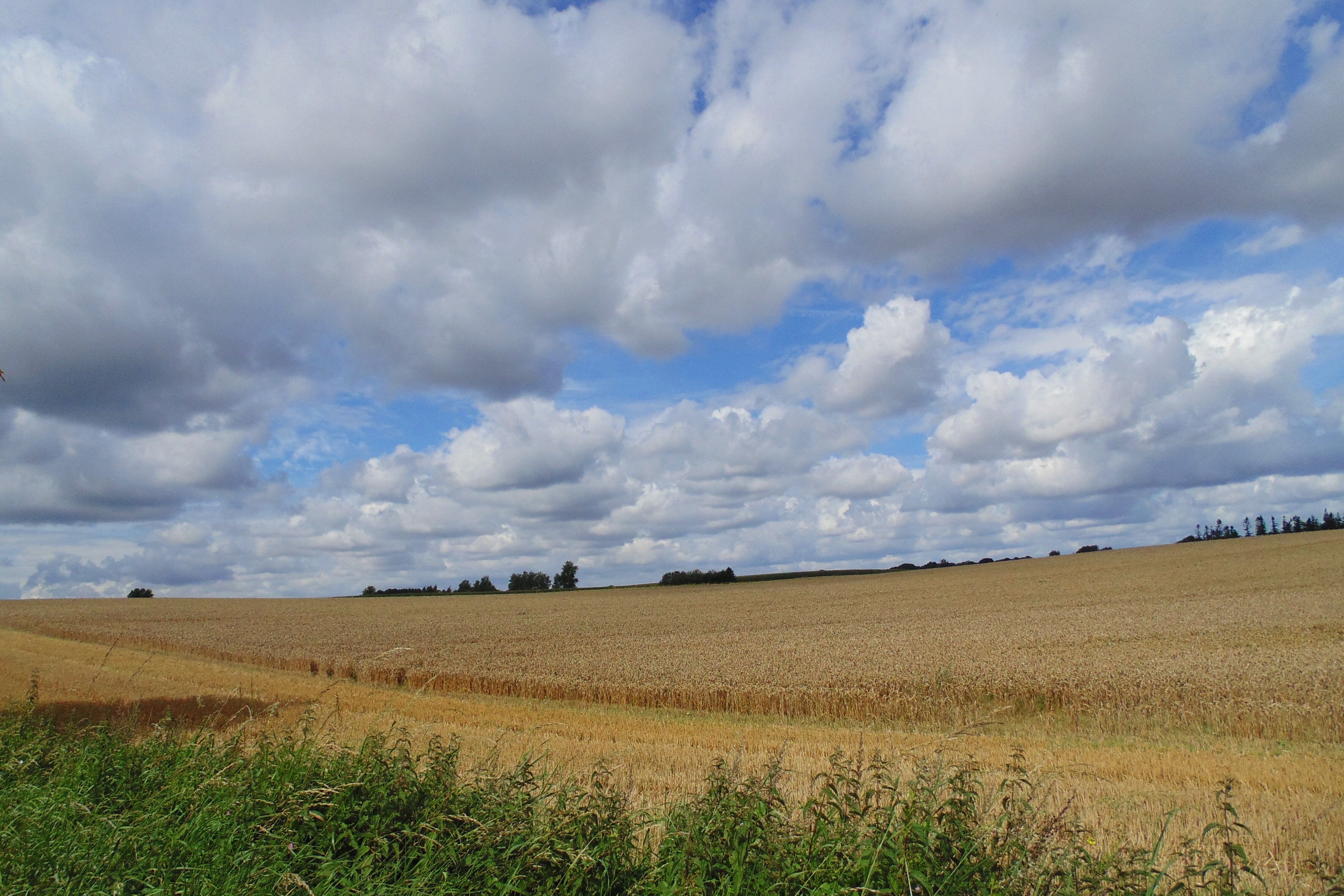 De lune dage med over 20 grader flere steder, kun lidt vind, skyer og lidt regn har givet brændende solnedgange, en dyster himmel over stranden, og modne kornmarker.