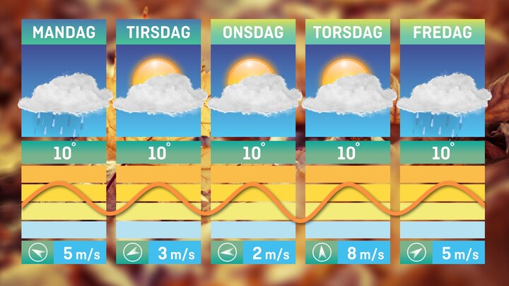 Måske har du efterårsferie i hele eller noget af næste uge og vil gerne vide, om du skal finde regntøj og gummistøvler frem.