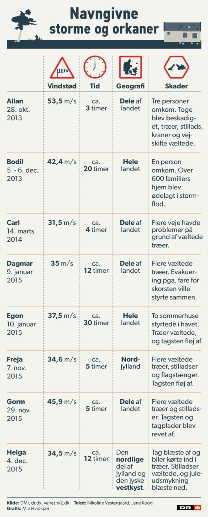 Vi har navngivet storme i to år - her kan du se, hvad de hver især har bedrevet.