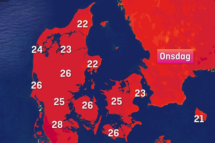 Vejret er allerede før klokken seks i sommersporet, og forude venter en varm sensommerdag. Temperaturerne når i dag op på 20-25 grader. Måske endda op til 28 grader i de sydvestlige egne i landet.