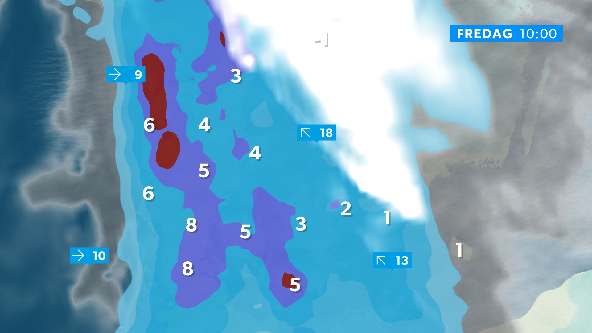 - Fra midnat bevæger en ny front sig ind over landet fra vest, og den kommer til at give os en våd start på fredagen. Det vil regne den første halvdel af dagen, siger hun.