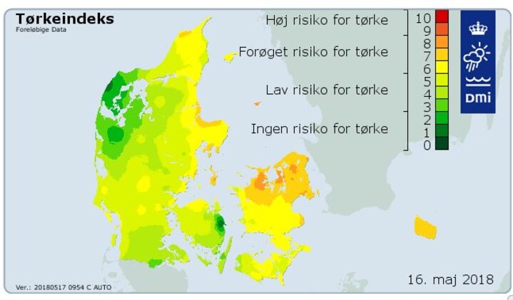 Der er nok mange landmænd og haveejere, som ville tage lidt regnvejr som en gave. Maj har nemlig været særdeles tør og efterladt dele af landet i risiko for tørke.