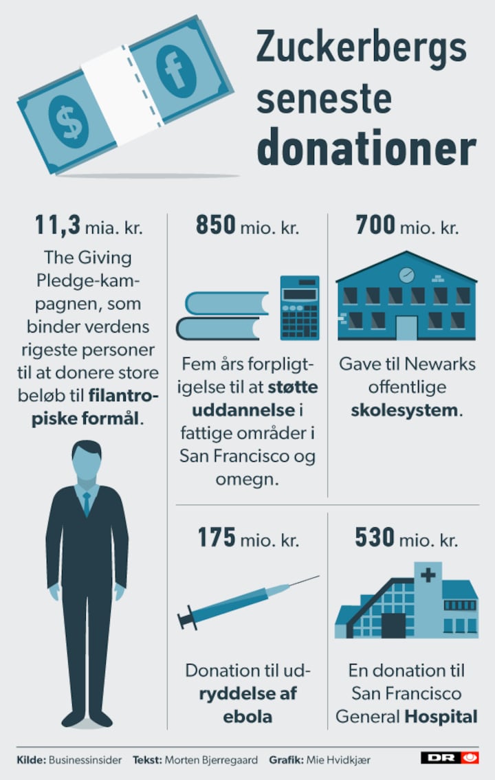 Ifølge erhvervsmediet Bloomberg vil Mark Zuckerberg dog ikke give mere end én milliard dollars, omkring 7 milliarder kroner, om året. I hvert fald i de næste tre år.