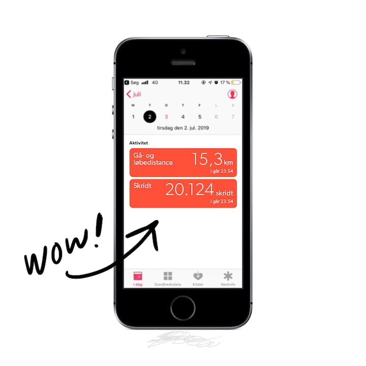 Faktisk viser hans skridttæller dagen efter, at han har gået - og danset sig til - over 15 kilometer.