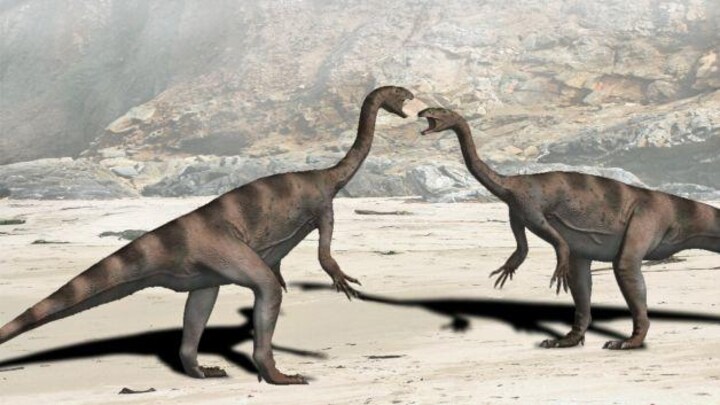 Nogle af de gigantiske dyr var planteædere med ekstremt lange halse. De kunne spise alt grønt på træerne i en stor radius rundt omkring - helt uden at flytte sig.