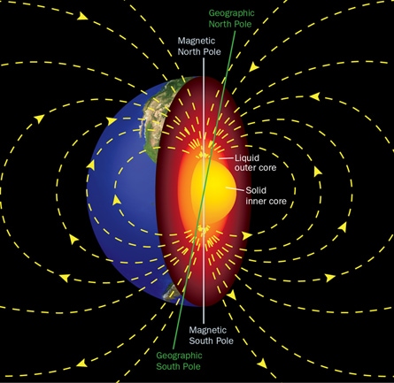 De magnetiske mineraler i klipperne vender derfor den vej, som magnetfeltet pegede på det tidspunkt klippen blev dannet.