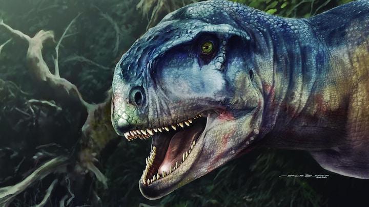 - Ligesom hos alligatorer har den nyopdagede dinosaur luftfyldte kamre, der forbinder ørene. Det hjælper den med at retningsbestemme, hvor en lyd kommer fra, siger han.