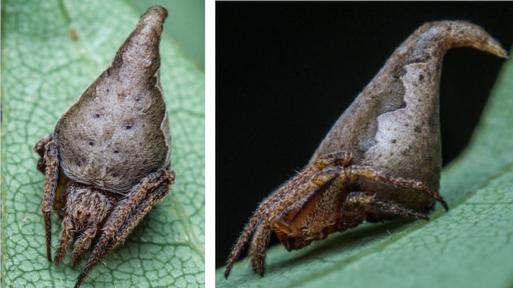 Edderkoppen beskrives som "en lille kryptisk, nataktiv arachnid, der gemmer sig i og efterligner visne blade, når det er lyst".