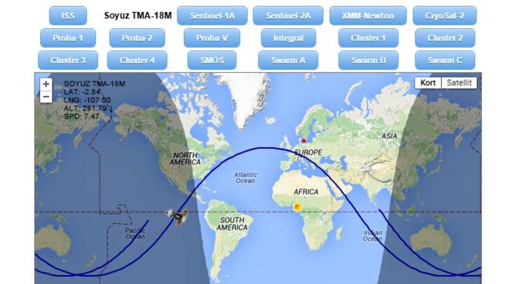 Sørg for, at tasten for Soyuz TMA-18M er markeret, for kortet starter automatisk med at vise ISS' kredsløbsbane.