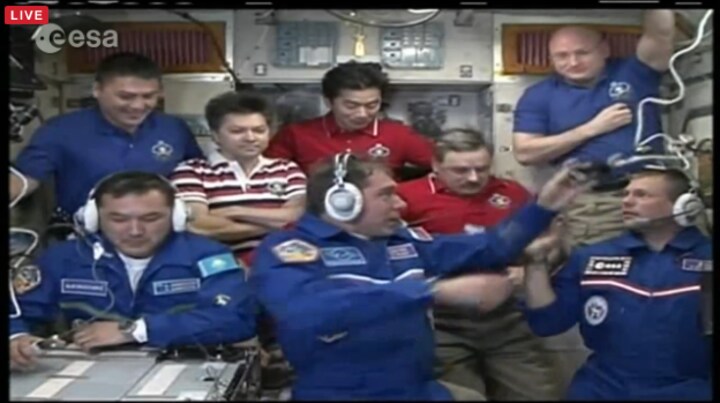 De skal også spise et festmåltid sammen med de andre på rumstationen.