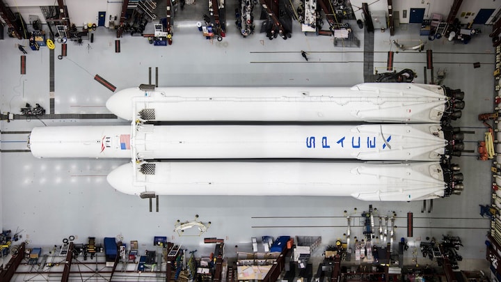 Og nu er den ved at være samlet. Det har manden bag Space X, den berømte entreprenør Elon Musk, netop afsløret i en serie fotografier på Twitter, hvor man kan se det første glimt af raketten, der har tre kroppe.