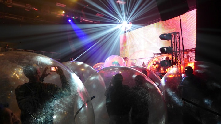 Nu turnerer bandet rundt med deres såkaldte space bubble-idé, hvor publikum såvel som bandmedlemmer er lukket inde i oppustelige plastikbobler.