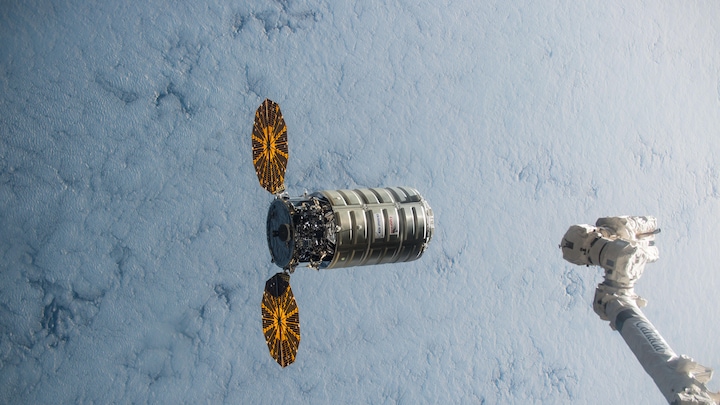 Orbital ATK's rumskib hedder Cygnus. Fartøjet har også besøgt ISS flere gange. Det kan ikke genanvendes, men kan fyldes med skrald og udtjente instrumenter og brænde op i atmosfæren.