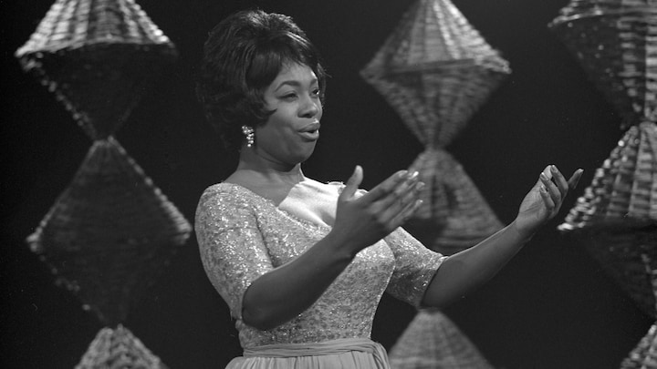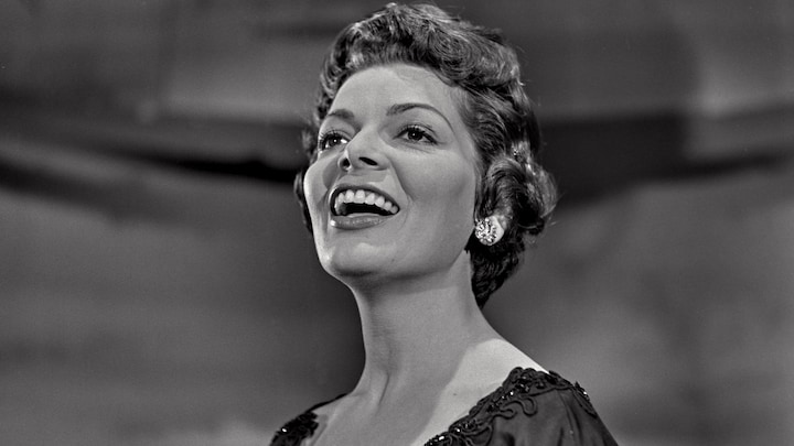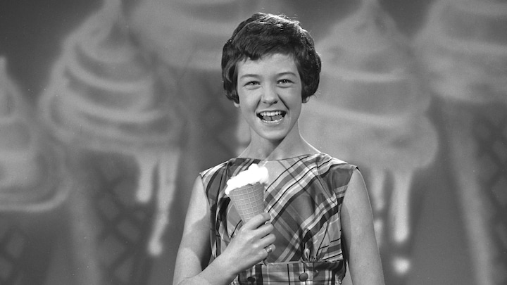 Dorthe Kollo hed Dorthe Larsen, da hun som 12-årig optrådte i 'Pladeparade' den 12. december 1960. Her blev der - måske lidt upraktisk i det varme studie - spist is. Dorthe Kollo fik allerede sin første pladekontrakt som 9-årig, og hun er still going strong. (Foto: © Dr arkiv)6 / 16