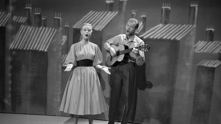I september 1957 var der ingen, der kunne vide, at Grethe og Jørgen Ingmann seks år senere ville være på alles læber og være de første danske vindere af Eurovisionens Melodi Grand Prix. Parret var med i den allerførste 'Pladeparade' det år, og det skulle vise sig at blive DR's første længerevarende programserie med musik. I alt gik programserien over skærmen 65 gange i perioden fra 1957-1963. (Foto: © Dr arkiv)1 / 16
