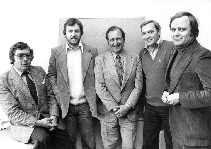 Svend Gehrs er uddannet journalist efter den gamle mesterlære på Bornholms Tidende. Fra 1963 fulgte fem år på Ekstra Bladet, før han kom til DR i 1968 og var der i næsten 30 år. Her ses han sammen med nogle af kollegerne fra DR Sporten i 1978: Hans Grønfeldt, Jørgen Steen Nielsen, Niels Christian Niels-Christiansen, Finn Kobberø og yderst til højre Svend Gehrs selv. (Foto: © Kurt Petersen, Scanpix)4 / 10