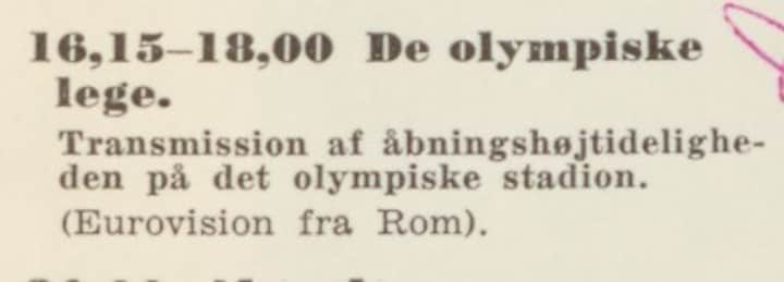 Det blev da også i 1960, at seerne for første gang kunne se dansk fjernsyn fra OL i Rom. Dog havde Danmarks Radio stadig ikke et tv-hold med ved legene - det var endnu kun radioreporterne, der sendte danske optagelser hjem til lytterne. Men i 1960 var det muligt at få optagelser leveret fra Rom via Eurovision-samarbejdet, så de danske tv-seere kunne opleve det storslåede arrangement med deres egne øjne.