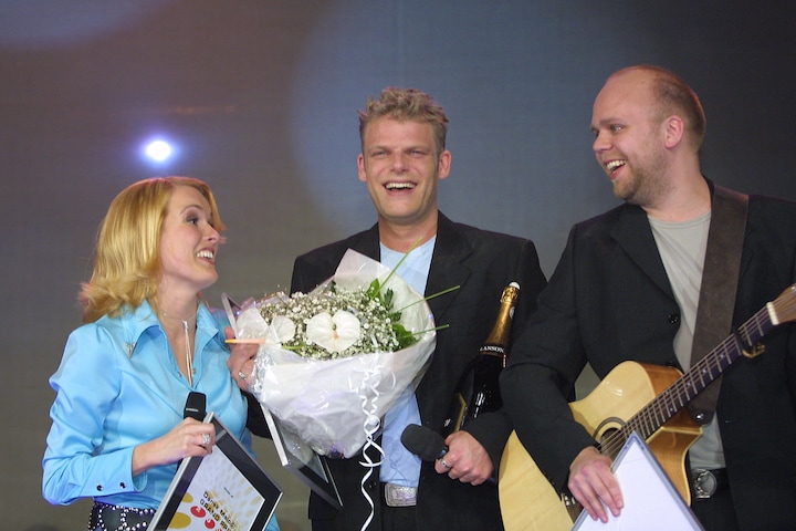 I 2001 var det lige ved og næsten for Danmark igen, da DR og Danmark stod for at arrangere det publikumsmæssigt største internationale Melodi Grand Prix i Parken i København efter Brødrene Olsens internationale sejr. Signe Svendsen, Søren Poppe og Stefan Nielsen udgjorde 'Rollo og King', som vandt med en af konkurrencens længste sangtitler: 'Der står et billede af dig på mit bord'. På hjemmebane sikrede de sig en 2. plads, mens Estland endte med at sejre. (Foto: © Bjarne Bergius Hermansen)16 / 24
