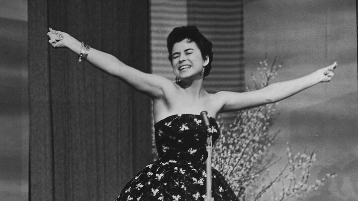 I 1961 havde 22-årige Dario Campeotto held på sin 'lottokupon med joker', som han har kaldt sin sejr det år i DR-vært Ole Tøpholms Grand Prix-bog 'De største øjeblikke'. Den dag i dag synger han stadig ofte nummeret 'Angelique', som er blevet en af Grand Prix-klassikerne. I 1961 blev finalen for første gang holdt i Jylland - nemlig på Fredericia Teater, og som det kan ses af billedet her, var Birte Wike også med dét år. Da hed hendes nummer 'Jetpilot'. Dario blev nummer fem internationalt. (© DR-TVarc)4 / 24