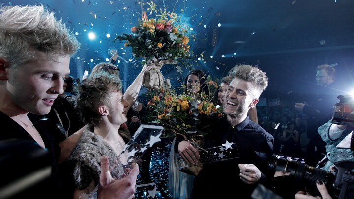 Fyr og Flamme er årets repræsentanter for Danmark ved dette års Eurovision Song Contest. Duoen, der også er kendt for hits som 'Kamæleon' og 'Menneskeforbruger', består af Jesper Groth (tv.) og Laurits Emanuel. Desværre klare de sig ikke videre fra semifinalen til finalen. (Foto: © Martin Fält, DR)23 / 24
