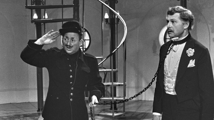Buster Larsen og Poul Reichhardt spiller her sammen i musikfilmen 'Flagermusen', som John Price instruerede for TV-Teatret i julen 1968. På det tidspunkt var der tradition for, at DR hvert år sendte en ny operette i julen.9 / 14