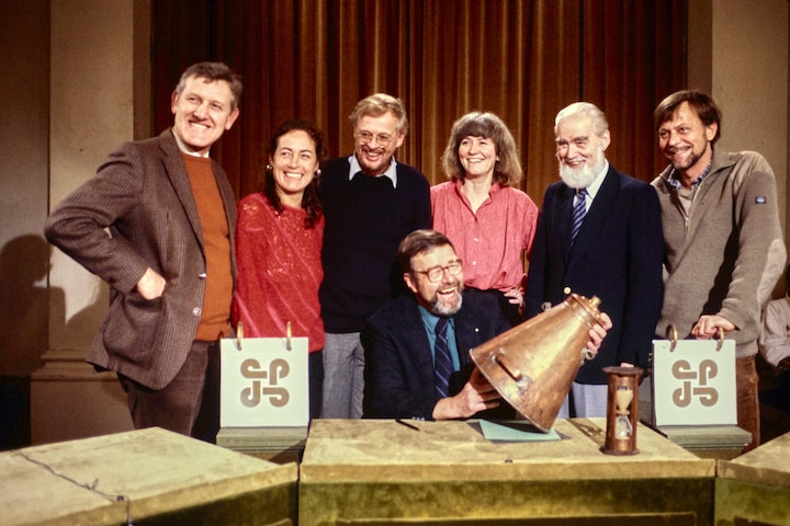 For det var det Jan Piet Schønheyder van Deurs udbrød i en årrække i DR1’s arkæologisk-etnografiske quiz, hvor to hold skulle gætte tid, sted og anvendelse på historiske genstande. Sådan så det ud den 29. april 1983 klokken 19.45 på DRs dengang ene tv-kanal. Piet van Deurs døde i februar 2018, og havde han levet stadig, ville han være fyldt 90 år den 5. februar 2021. (Foto: © Dr arkiv)2 / 9