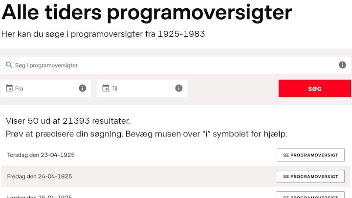 Nogle vil måske undre sig over, at man kun kan søge frem til og med 1983. Det skyldes, at programoversigterne alene fandtes i papirudgaver frem til da, og at programoversigterne fra de 58 år derfor blev digitaliserede på én gang.
