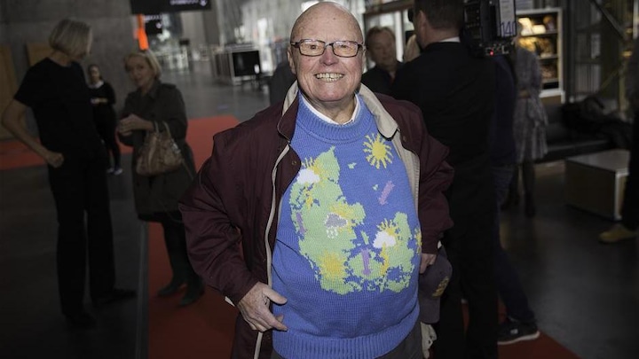 Selv om Henrik Voldborg aldrig nåede at komme til at arbejde i DR Byen, der først blev taget i brug i 2005, har han været der - og han havde taget vejrudsigten med i trøjeform, da TV-Avisen i 2015 fejrede sin 50-års-fødselsdag i DR Koncerthuset. Nu er det ham selv, der har noget at fejre 7. april. Du kan se flere klip og programmer med Henrik Voldborg ved at søge på hans navn på dr.dk/bonanza. (Foto: © Bjarne Bergius Hermansen., Type 1)15 / 15