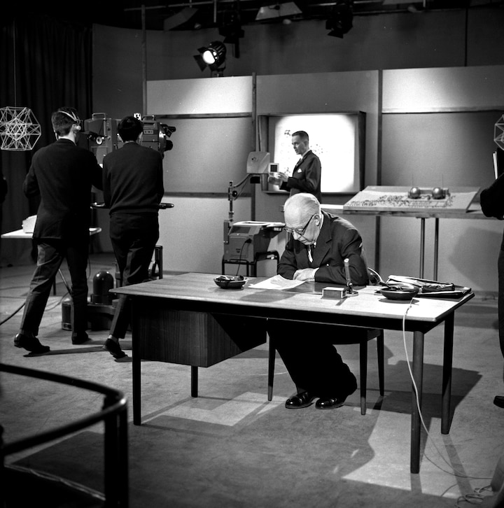 Fra DR's gamle fotoalbum: Niels Bohr var lærer, da DR skød 'Skole-TV' i gang for 60 år siden