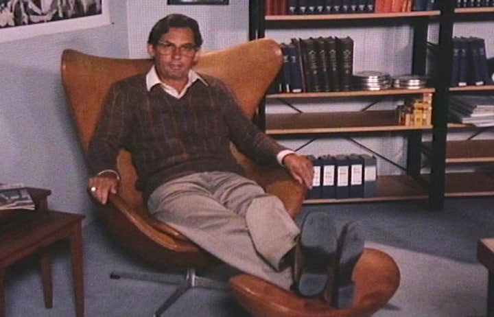 Fra i søndags - den 15. januar - har du haft mulighed for at se eller gense Paul Hammerich i serien, der var på 10 afsnit og i alt 805 minutter. I den kommende tid bliver der vist to afsnit hver søndag eftermiddag på DR2 og DRTV - næste gang dog 29. januar klokken 15.30, da der er håndbold-VM på søndag. Her er Paul Hammerich i sin tid i gang med at finde egnede klip til programmerne - og det var før DR's bånd var blevet digitaliseret. (© Foto fra bånd)2 / 9