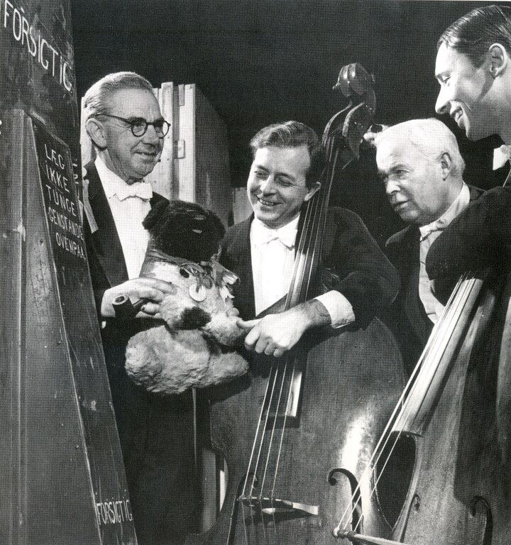 Her ses Peddersen i selskab med Radiosymfoniorkestrets basgruppe i forbindelse med en koncert under turnéen til USA i 1952. Hunden tronede altid på scenen sammen med Radiosymfoniorkestret, når det var på turné.