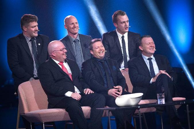 Normalt er ‘Rigtige Mænd’ Lindy, Hammer, Jonas, Palle og Søren, men i den festlige anledning tilsluttede Lars Løkke Rasmussen sig gruppen. (Foto: © Bjarne Bergius Hermansen, Type 1)