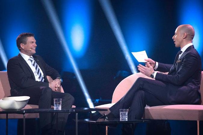 Danmarks første astronaut, Andreas Mogensen, og vært Mark Stokholm i 'Året der gik 2015'. (Foto: © Bjarne Bergius Hermansen, Type 1)