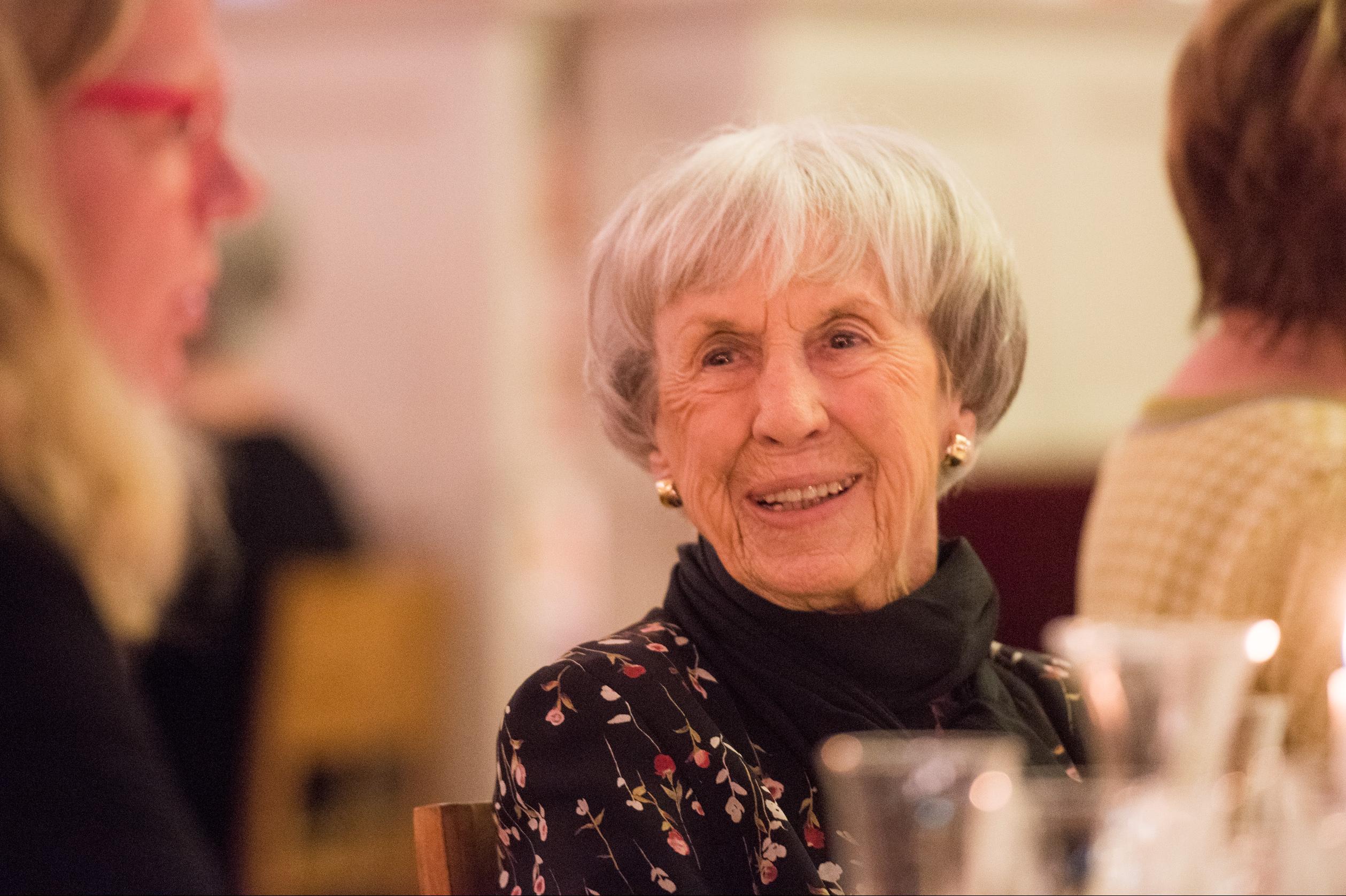 Hele dagen sluttede af på Postgaarden, hvor Ghita Nørby kom i selskab med ’Matador’s hovedforfatter, 98-årige Lise Nørgaard (billedet), og mange andre. De to og de andre gæster blev underholdt af Musse & Viggo Skjold Hansen, Maude, Misse og alle de andre kendte karakterer, der for første gang alle var samlet i Postgaarden, og som deltog i festlighederne ved bordene. Oberst Hackel bortauktionerede den omstridte Alabast-vase midt i middagen, ligesom fru Konsulinde Holm pludselig holdt en tale på vegne af Husmoderforeningen. (Foto: © Henrik Petit, © 2016 Henrik Petit for Korsbæk på Bakken)