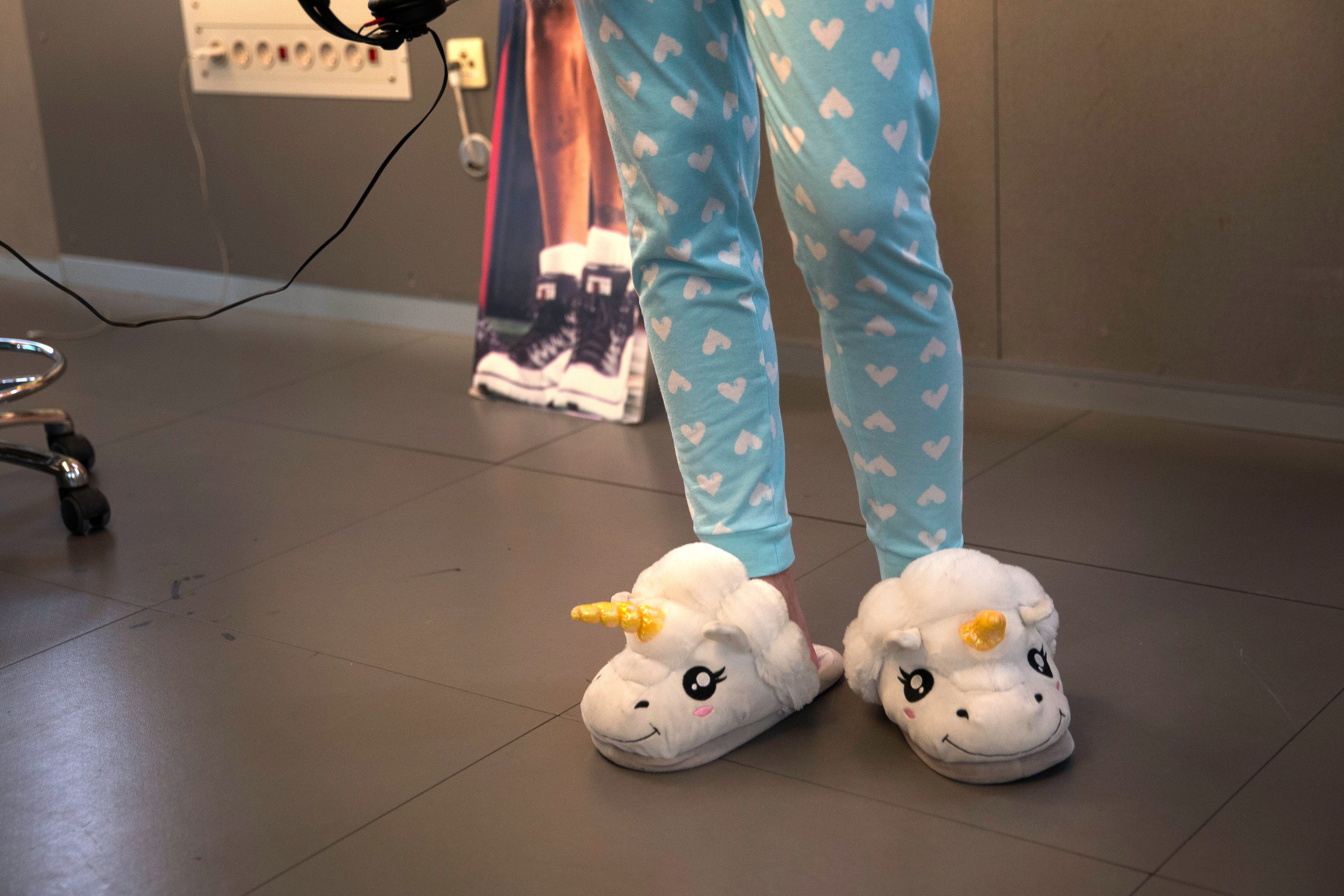 Gyrith Cecilie Ross så ud til at føle sig hjemme i studiet i nattøj og bløde sko. (Foto: © Bjarne Bergius Hermansen)
