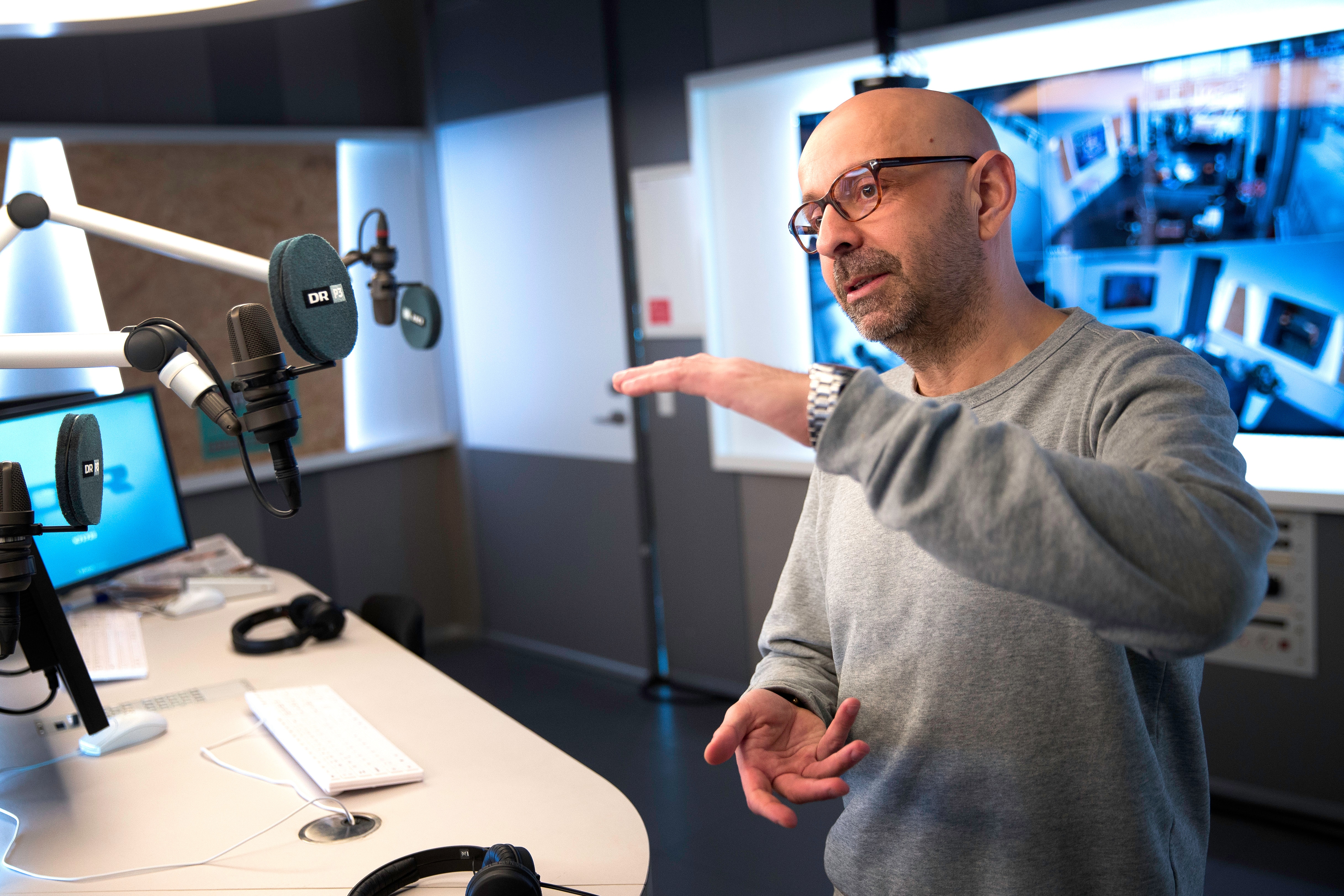 Flemming Møldrup var gæst i P3-studiet for at lege ’Kender du køkkenudstyrstypen?’ – og det gjorde han. (Foto: © Bjarne Bergius Hermansen)
