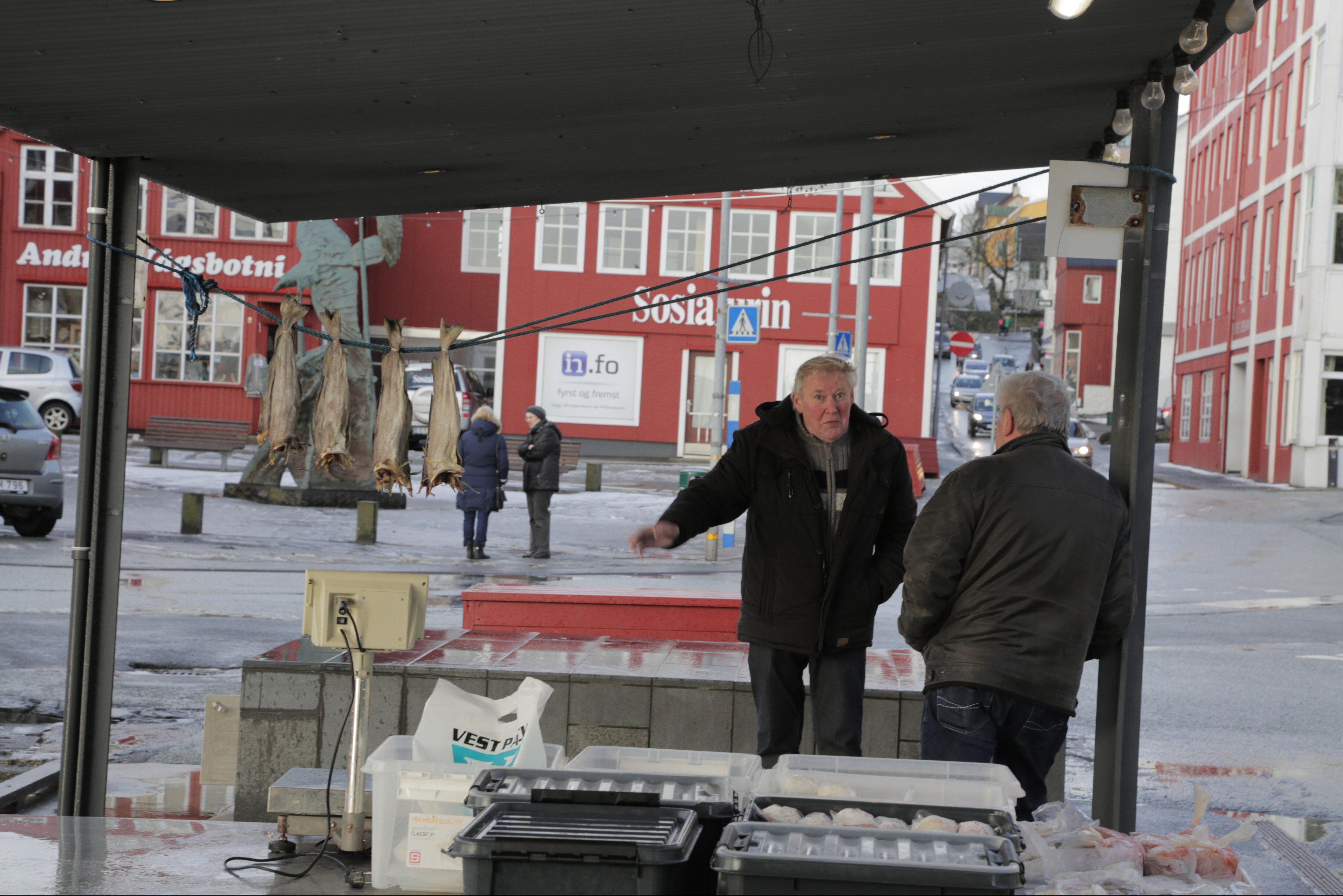 På havnen sælges der fisk – af disse to erfarne herrer. (Foto: © Jon Bonde Eriksen, (c) DR)