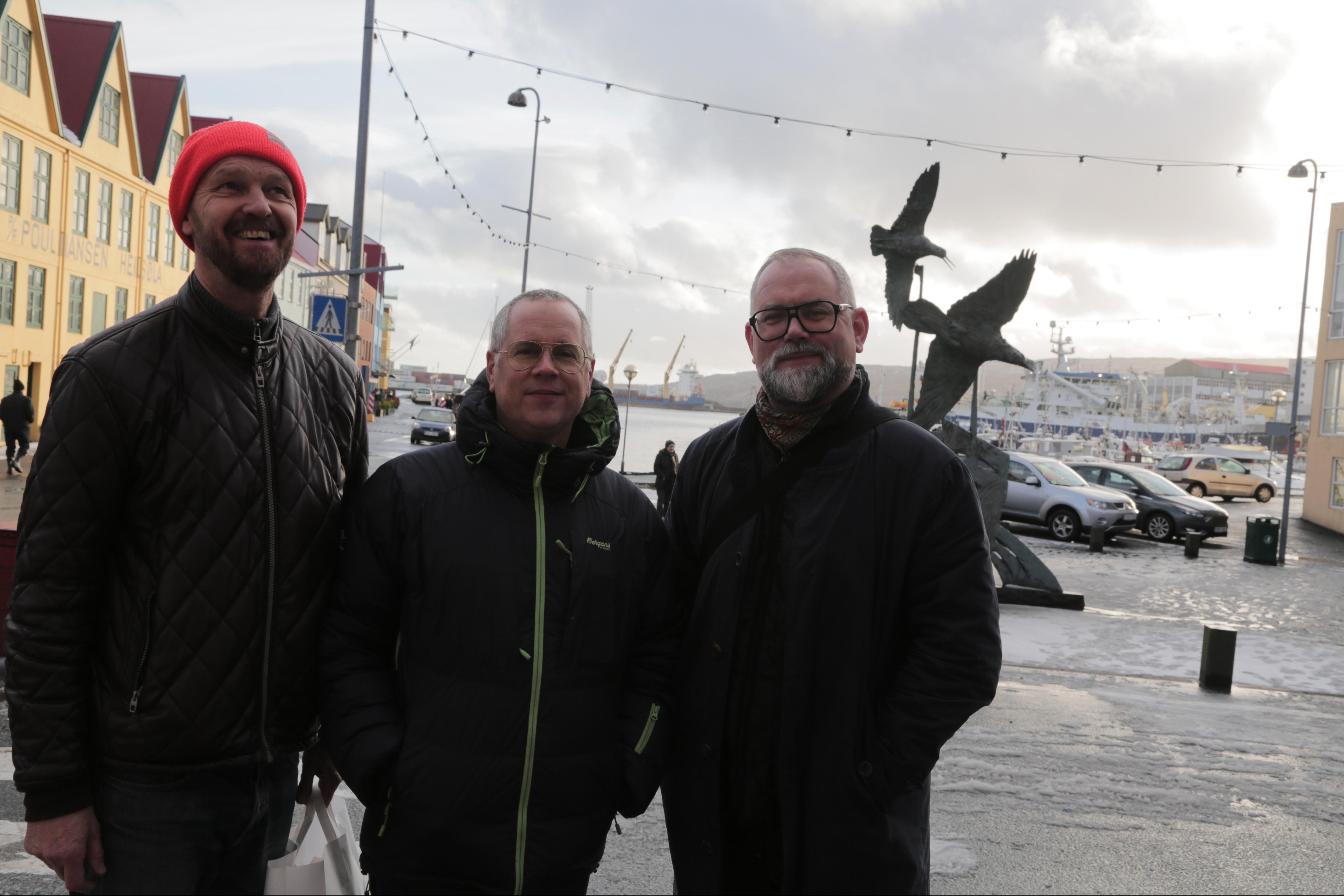 De tre saxofonister fra DR Big Bandet smager lidt på Tórshavn. Fra venstre: Anders Gaardmand, Hans-Ulrik og Karl-Martin Almqvist. (Foto: © Jon Bonde Eriksen, (c) DR)