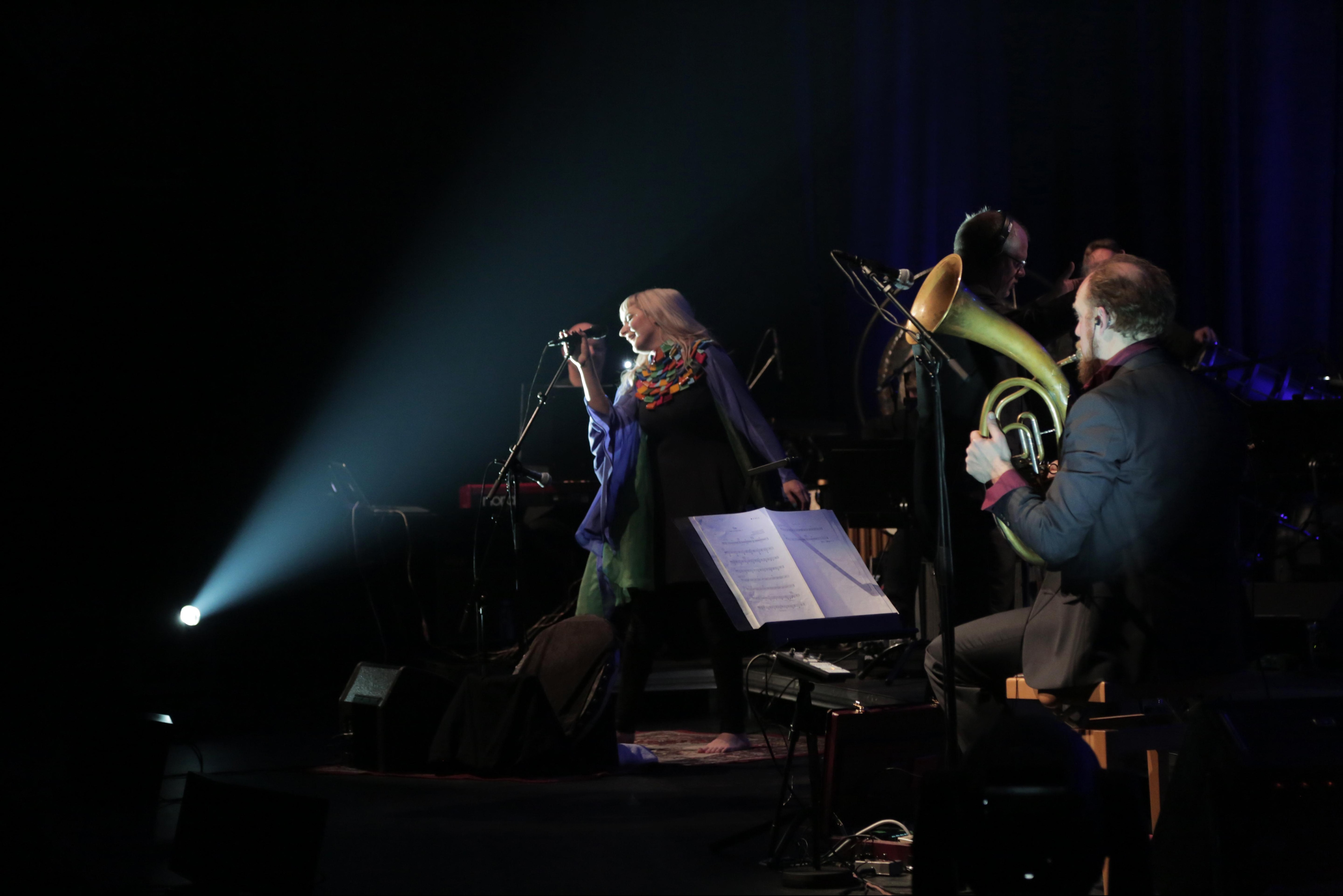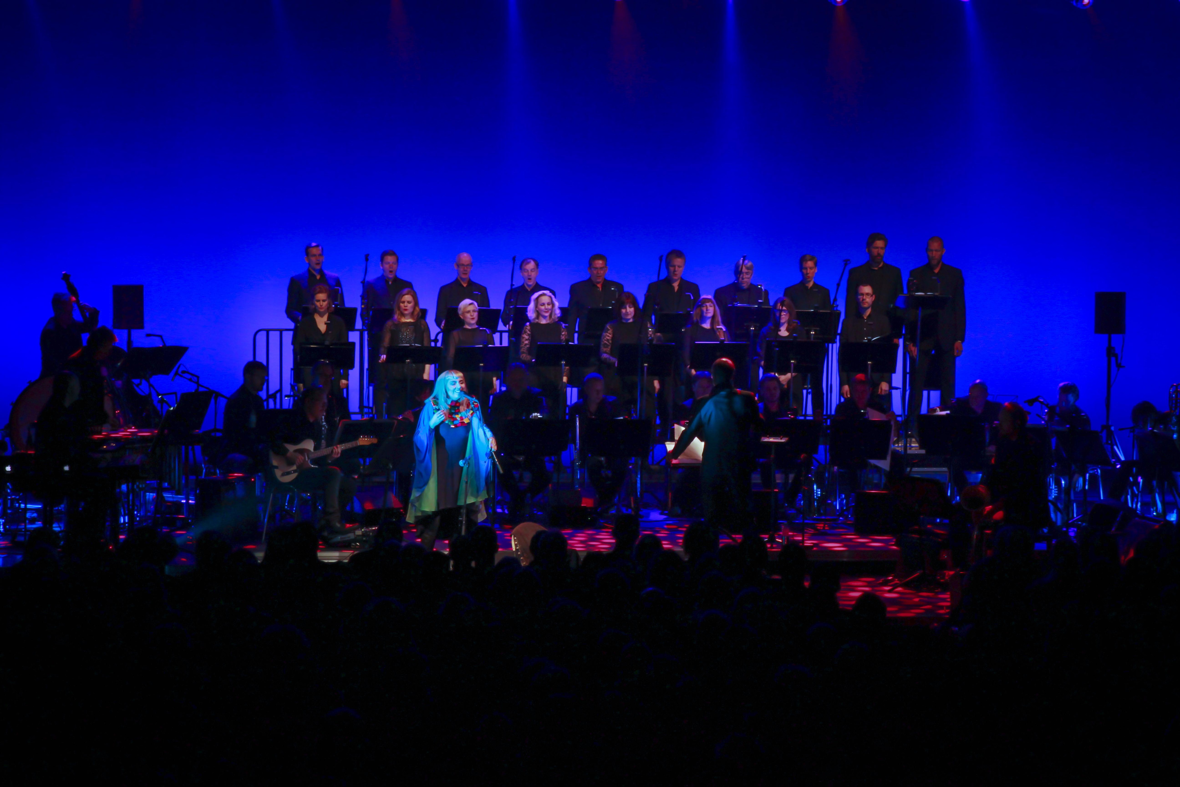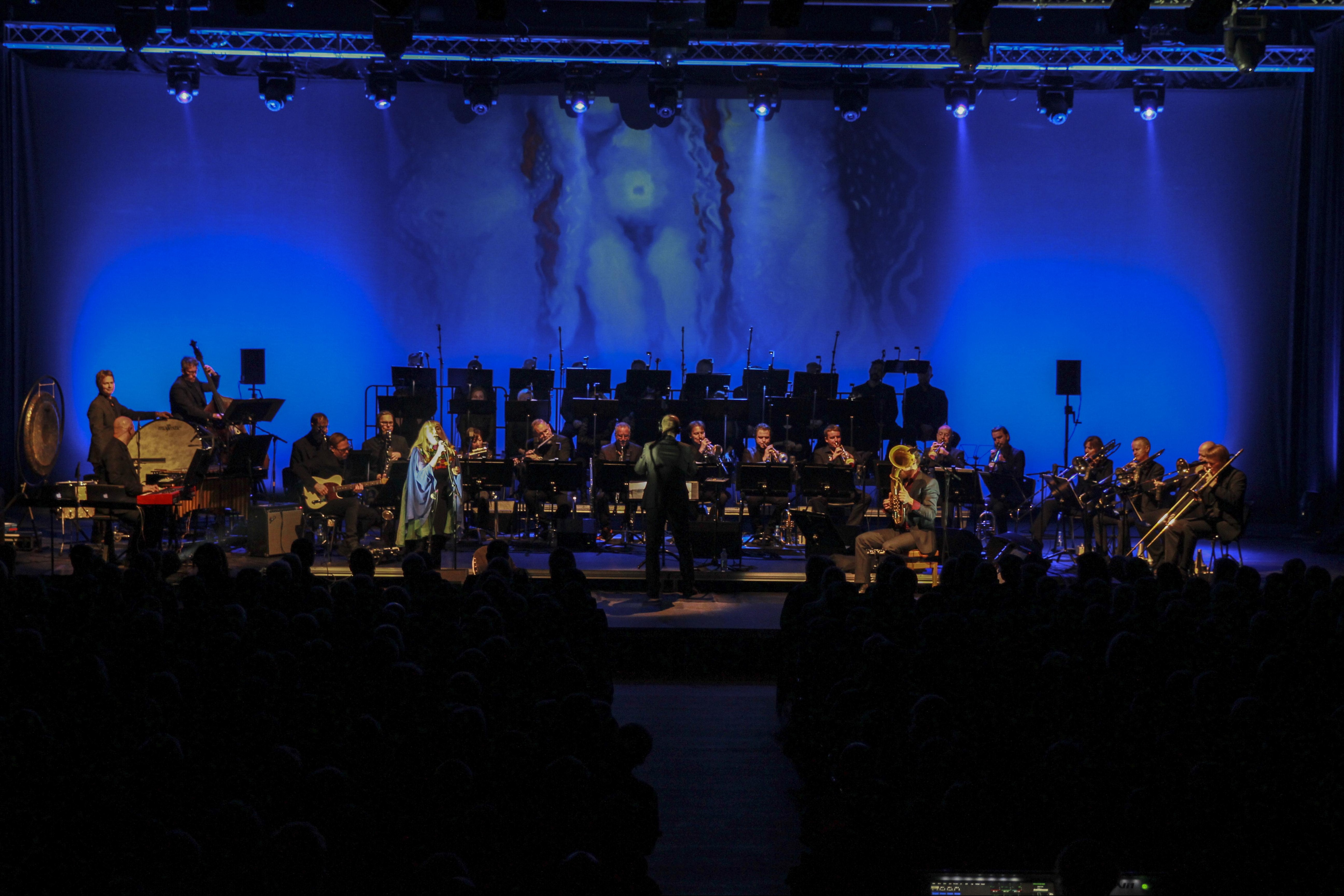 I disse dage er DR Big Bandet og DR VokalEnsemblet på tur med den færøske sanger Eivør og ’Sagnet om Sælkvinden’. Torsdag spillede de i Nordens Hus i Tórshavn, fredag spiller de i Musikhuset Harpa i Reykjavik og søndag i DR Koncerthuset. (Foto: © Jon Bonde Eriksen, (c) DR)