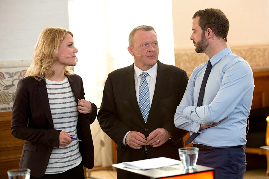 Allerede onsdag aften klokken 19 efter valgets udskrivelse, mødtes partilederne til den første store tv-debat. Her er det Johanne Schmidt-Nielsen, Lars Løkke Rasmussen og Morten Østergaard. (Foto: © Bjarne Bergius Hermansen)