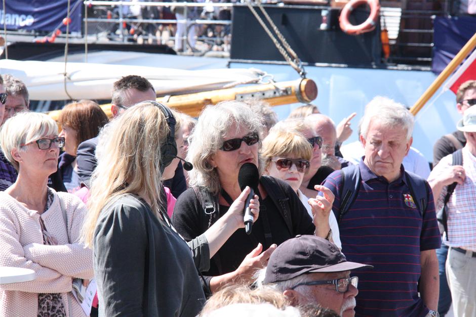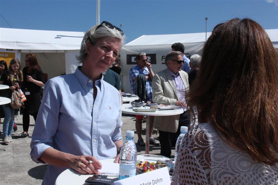 Direktør for DR Danmark, Anne-Marie Dohm i dialog om DR og public service på Folkemødet på Bornholm. Borgere, politikere og organisationer møder hinanden under åben himmel, i store telte og på molen i Allinge for at diskutere samfundets udfordringer til Danmarks største politiske festival. (Foto: © Torben Jensen- DR)