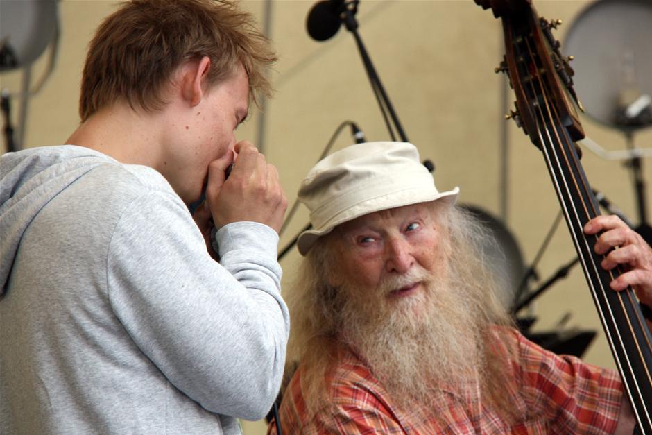 Master Fatman præsenterede den unge mundharmonikaspiller Mathias Heise, der optrådte sammen bassisten Hugo Rasmussen. (Foto: © Kirsten Stubbe-Teglbjærg)