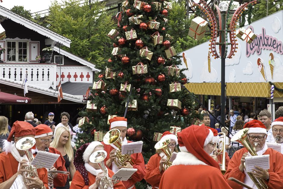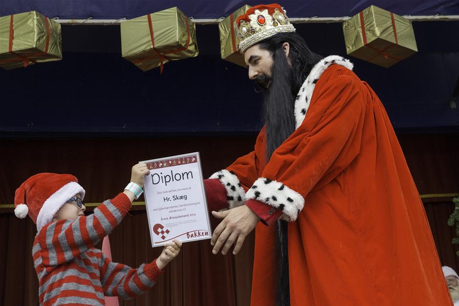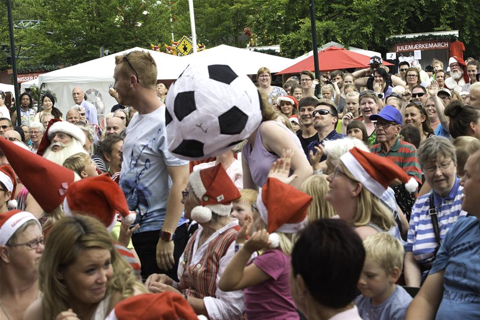 Der var fyldt med mennesker på Bakken til årets julemandskongres. Julemænd fra hele verden var rejst til Nordsjælland for at vise den røde dragt frem. (Foto: © Bjarne Bergius Hermansen)