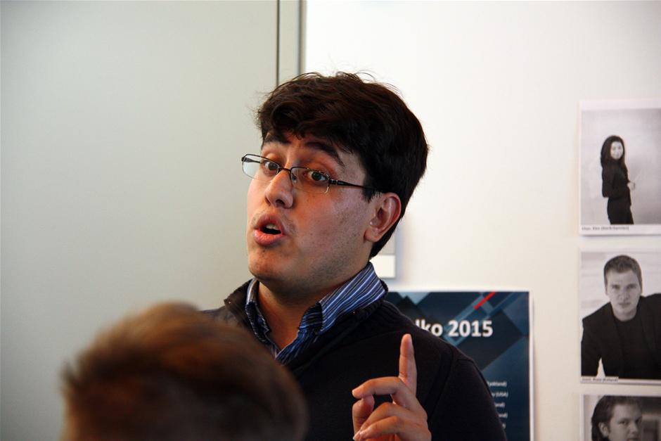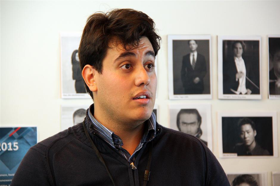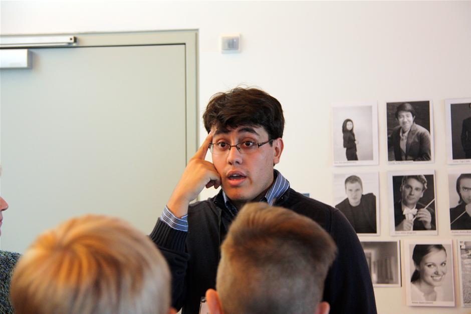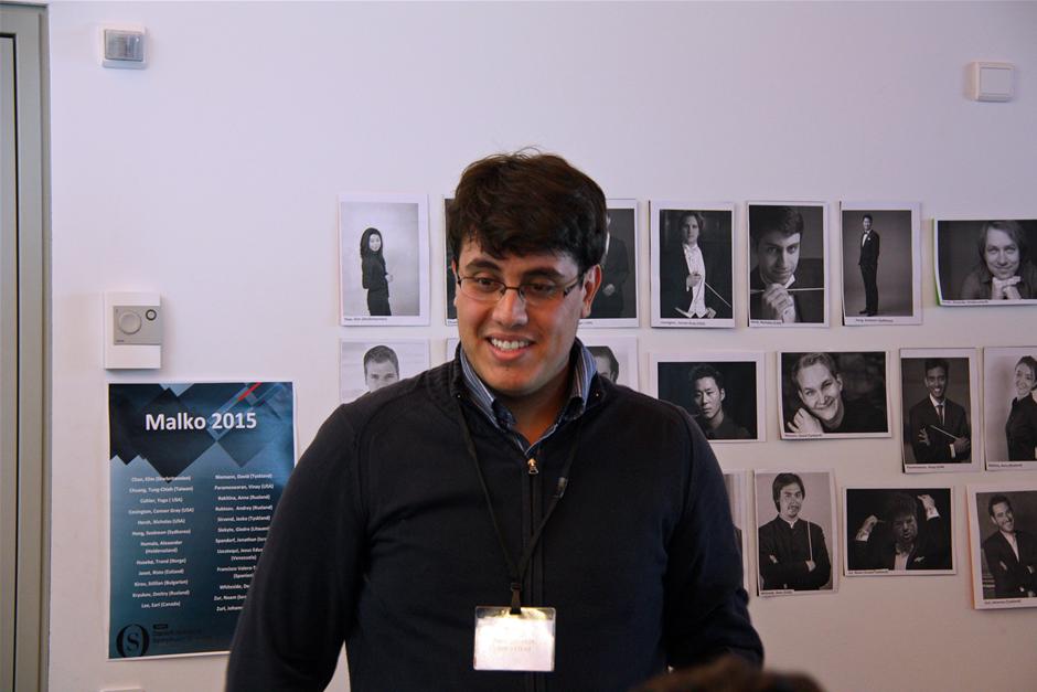 Jesus Eduardo Uzcategui fortalte, at han er opvokset i Caracas, Venezuela, og har spillet violin siden han var 6 år blandt andet i et ungdomsorkester. For fire år siden begyndte han som dirigent. (Foto: © Kirsten Stubbe-Teglbjærg)