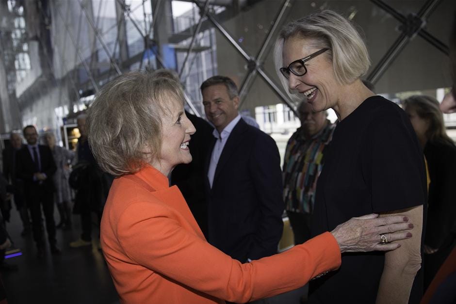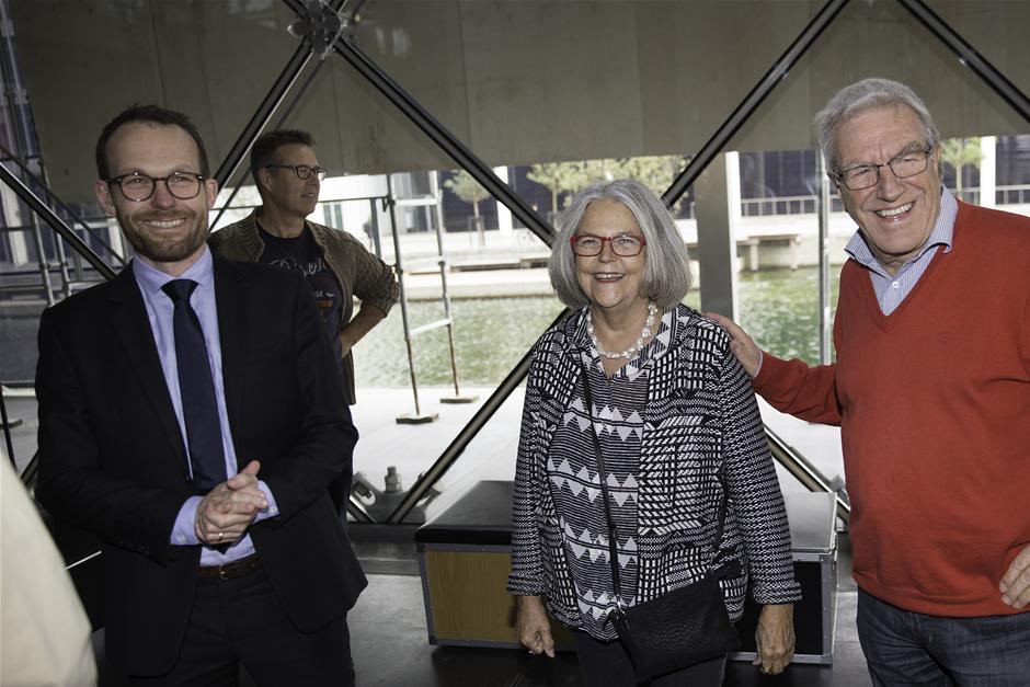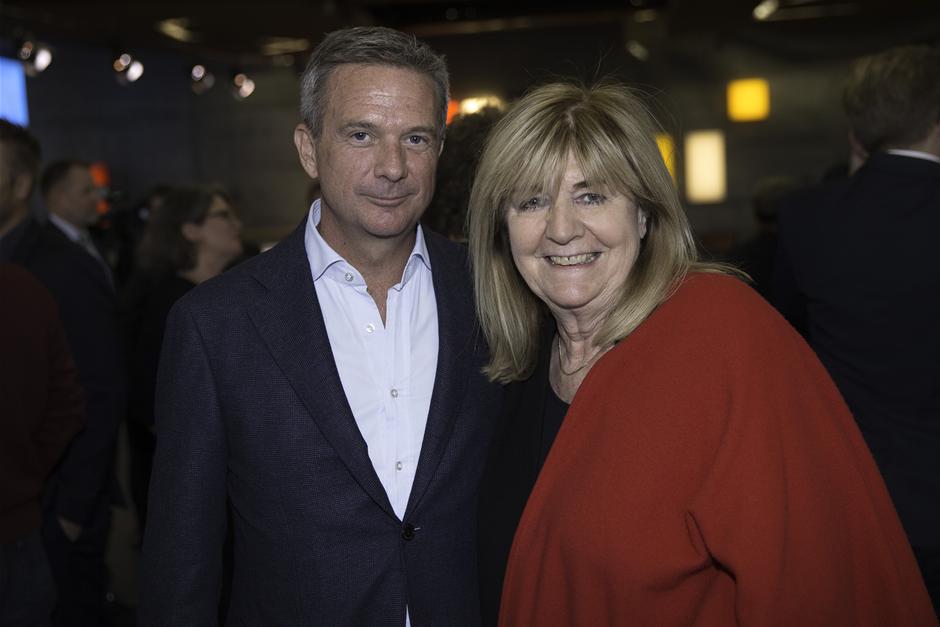Birgit Meister var for eksempel vært, da DR sendte TV-Avisen fra TV-Byen for første gang i 1983. Torsdag var både hun og DR-generaldirektør Maria Rørbye Rønn på sin vis værter ved arrangementet. Meister var det på scenen sammen med Kim Bildsøe, mens Maria Rørbye Rønn bød alle gæster velkommen. (Foto: © Bjarne Bergius Hermansen., Type 1)