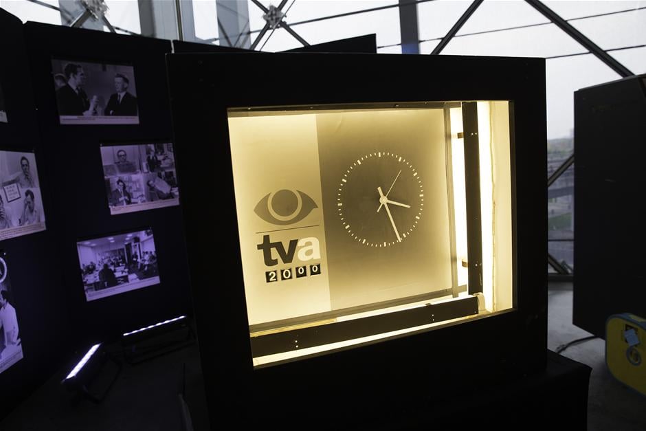 Det klassiske ur, der i mange år talte ned til klokken 19.30, var også med på dagen i en lille udstilling i DR Koncerthuset, som DR Museum havde lavet om TV-Avisen og hvordan den blev lavet i de tidlige år. (Foto: © Bjarne Bergius Hermansen., Type 1)