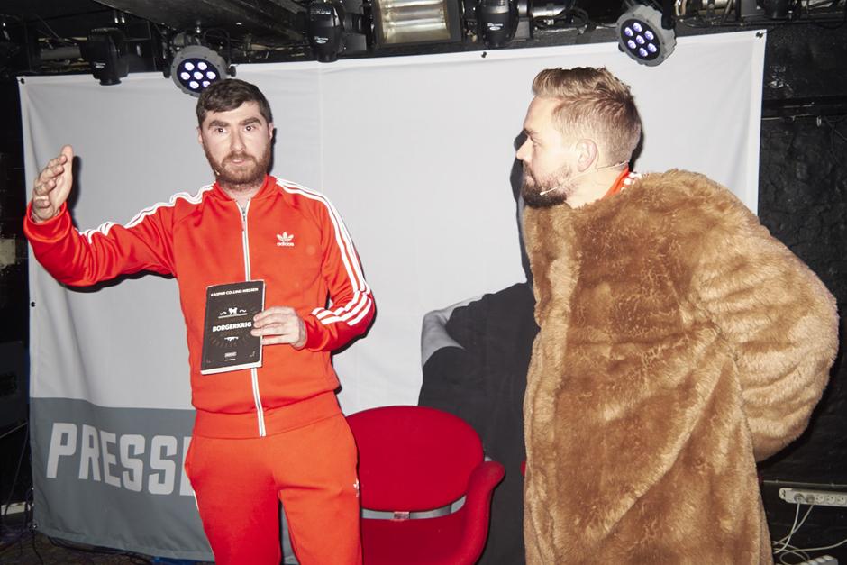 Det kom til sin ret i forbindelse med et indslag, hvor forfatteren Kaspar Colling Nielsen fortalte om sin bog 'Den Danske Borgerkrig 2018-24', som de to radiofolk er begejstrede for. (Foto: © Petra Kleis)
