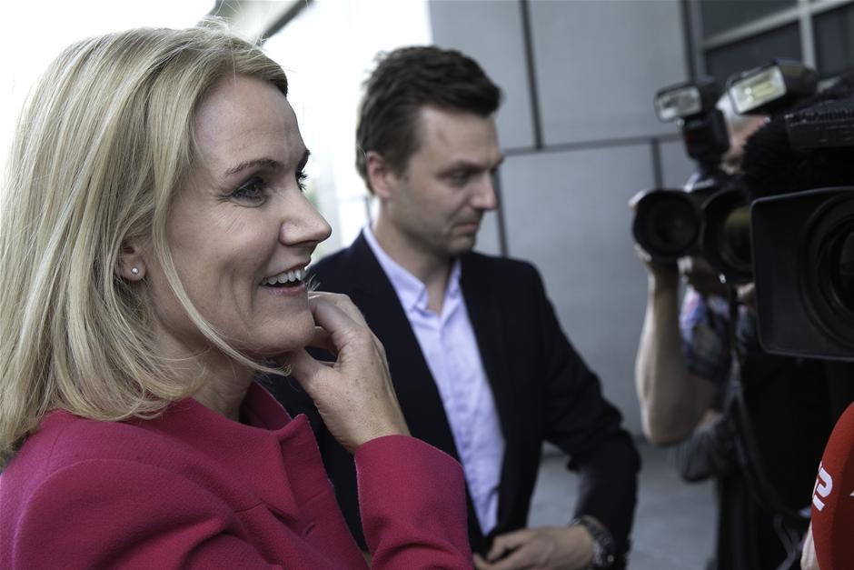 Helle Thorning-Schmidt ankommer til DR Byen, hvor duellen foregår. Den blev sendt live på DR1. (Foto: © Bjarne Bergius Hermansen)