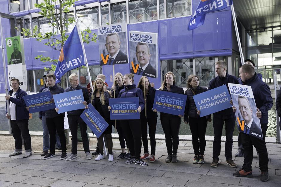 En lille gruppe af Lars Løkke Rasmussens støtter var samlet foran DR Byen for at byde ham velkommen. (Foto: © Bjarne Bergius Hermansen)